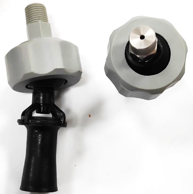 Küresel mafsallı ve 30° açılı döner başlığı sayesinde üfleme uçları, endüstriyel püskürtme nozulları vb. ünitelerin akış yönlendirmesini sağlar. Hava, su ve kimyasallarla uyumludur. Polipropilen malzemeden imal edilmiştir. Max. Basınç: 10 Bar Max. Sıcaklık Dayanımı: 130°C Giriş Bağlantısı: 1/4’’ BSP Erkek Çıkış Bağlantısı: 1/4ʺ BSP Dişi Aşağıdaki resimde görünen uç aparatlar dahil değildir. Ayrıca sipariş edilmelidir. |